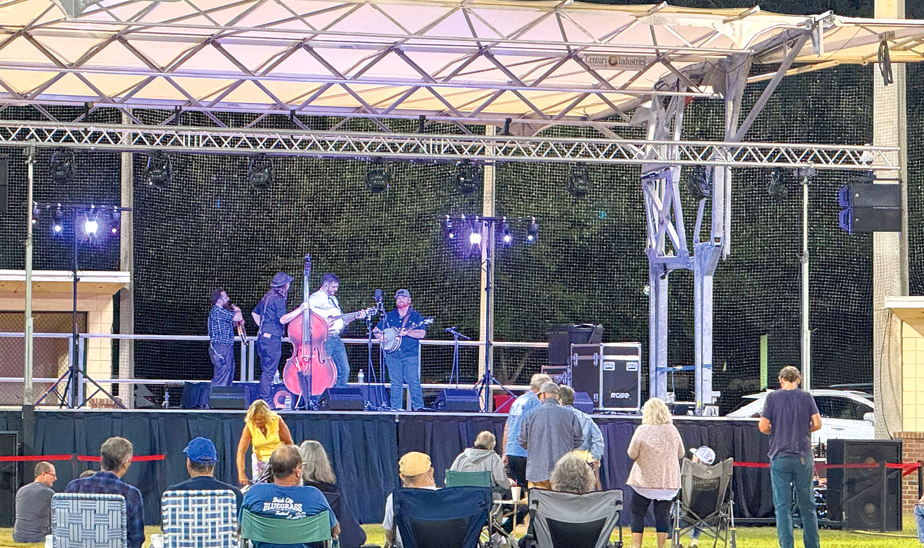 Concertgoers gather Friday, April 10, 2026, in Alachua for the second installment of the Levitt AMP Alachua Music Series, where a bluegrass band performs on the outdoor stage under clear evening skies. / Today Staff Photographer