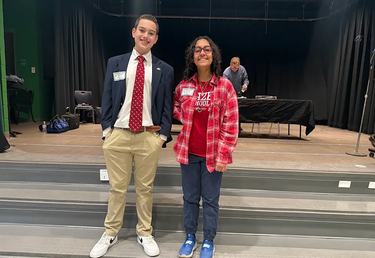 Cooper Campen, left, the 2026 Alachua County Spelling Bee champion, stands with second-place finisher Isabella Mendoza of the Frazer School after Campen secured a record-setting third consecutive county title. Campen will advance to the First Coast Regional Spelling Bee in Jacksonville on Feb. 27. / Photo special to Alachua County Today