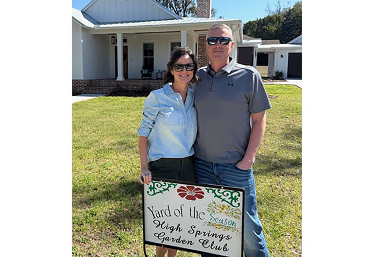 Add a commentHIGH SPRINGS – Mr. and Mrs. Michael Muldoon stand in front of their High Springs home after being recognized by the High Springs Garden Club as the recipients of the club’s Winter “Yard of the Season” award. Their home at 19019 Main Street was selected for its well-maintained landscaping and overall presentation.