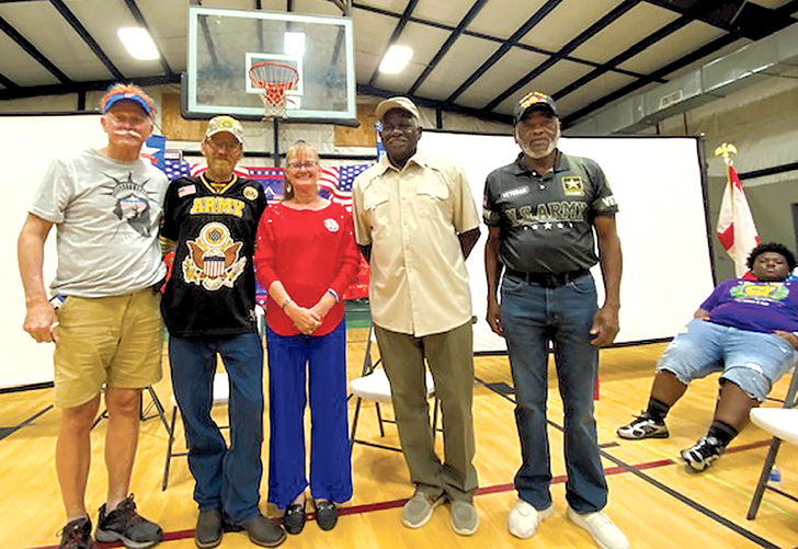 Retired Alachua City Mayor Gib Coerper (Navy, Ret.), Jackson Gold Star Family, Horace Jenkins (Navy) and Major (Ret.) Charlie Jackson / Photo special to Alachua County Today