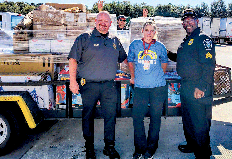 High Springs Police Department Chief Antoine Sheppard accepts donated items from the Walmart Distribution Center in support of Operation Holiday Cheer 2025. The donation of several pallets of supplies helped provide toys, clothing and other necessities to families in need throughout the High Springs community during the holiday season. / Photo special to Alachua County Today