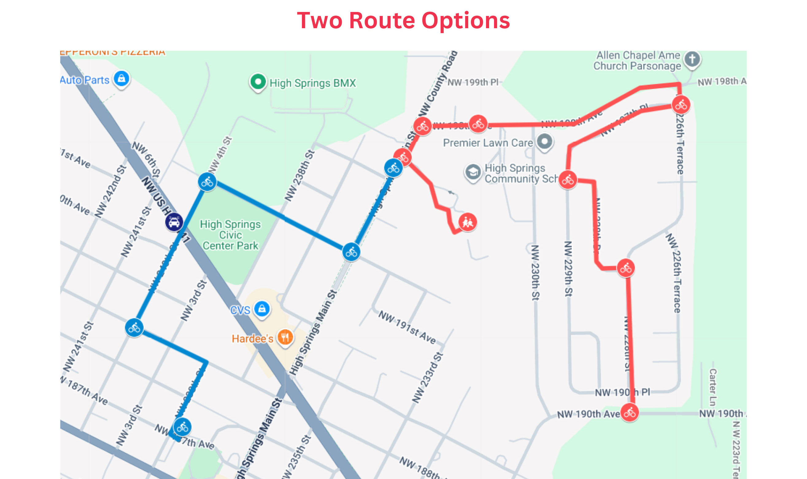 2026 High Springs Bike Bus Route Map 1SecondaryHIGH SPRINGS – Students at High Springs Community School will have a new way to get to campus next month as part of a nationwide effort to promote bicycle safety and healthy activity.